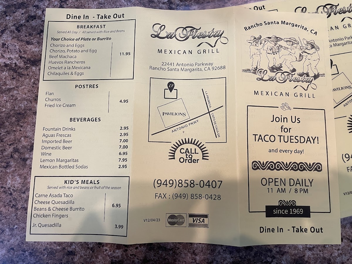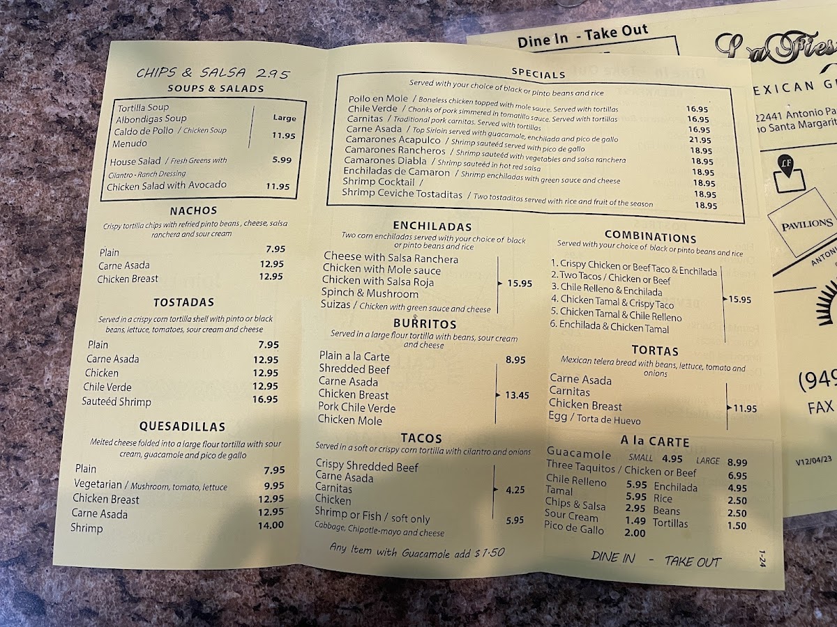 If you're searching for a delightful culinary escape in Rancho Santa Margarita, look no further than La Fiesta Mexican Grill. This charming establishment, located at 22441 Antonio Pkwy, is a must-visit for anyone craving authentic Mexican cuisine. With a passionate focus on family recipes and fresh ingredients, La Fiesta stands out as a pillar of the community and a beacon for gastronomes seeking genuine flavors.